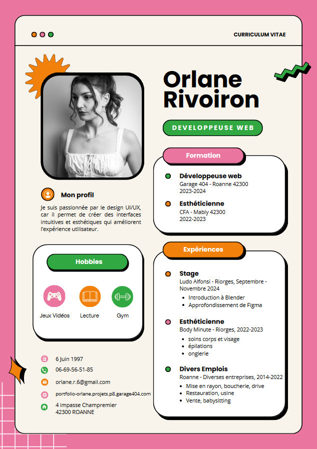 Si j’apprécie la programmation, c’est dans le design d’interface que je trouve ma véritable passion: ce domaine me permet d’allier esthétique et utilité pour créer des expériences captivantes qui facilitent la vie des utilisateurs. Mon parcours technique est une véritable force puisqu’il me donne une vision globale, me permettant de concevoir des interfaces créatives et réalisables, en tenant compte des contraintes des développeurs.